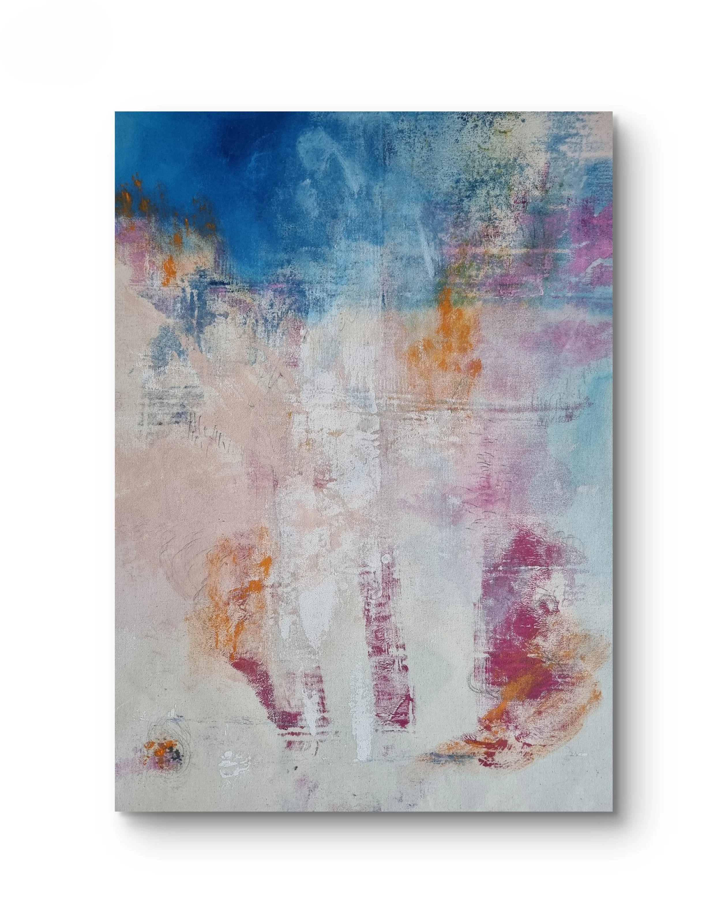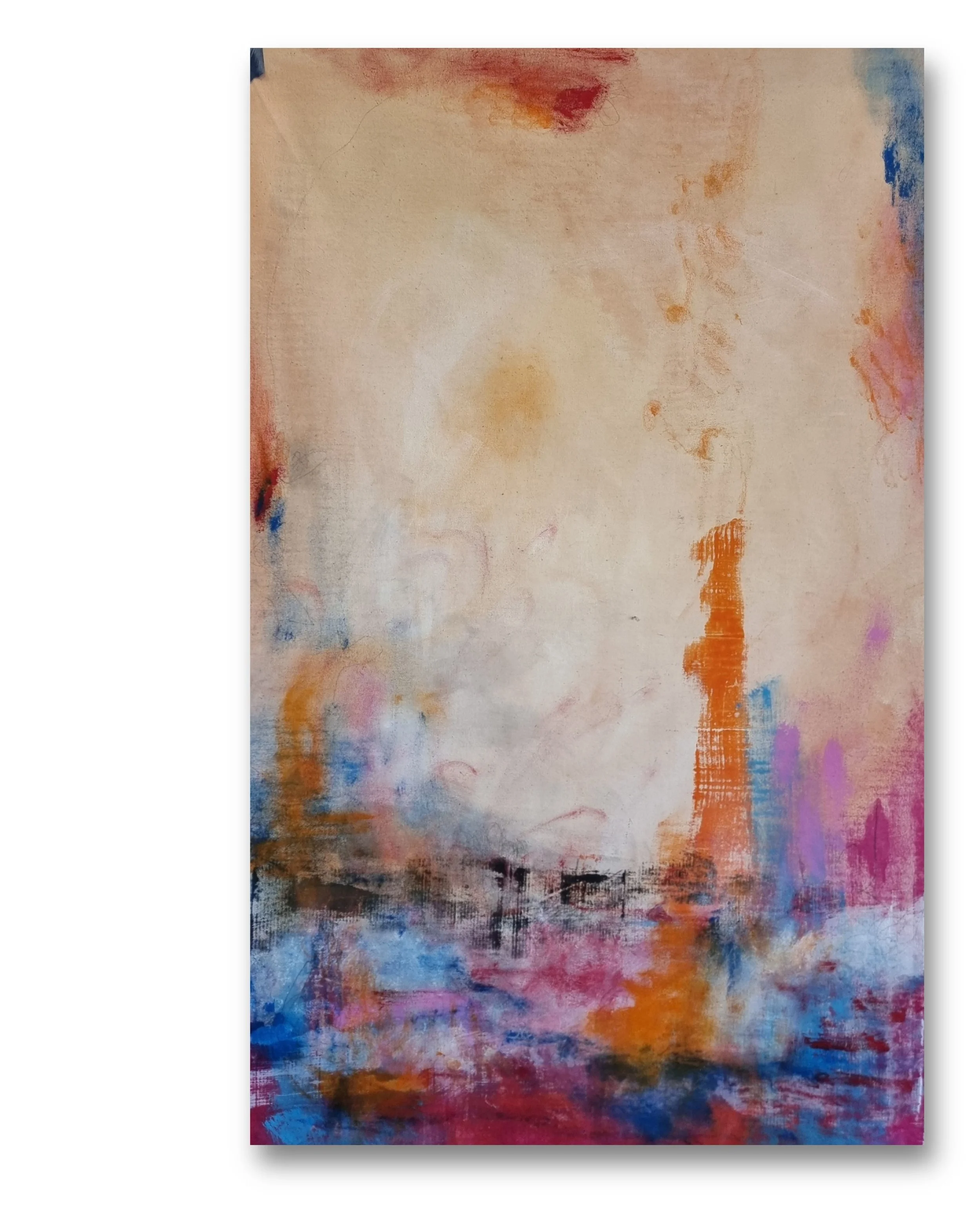 Acrilico, pastelli ed acquerello su tela grezza di cotone