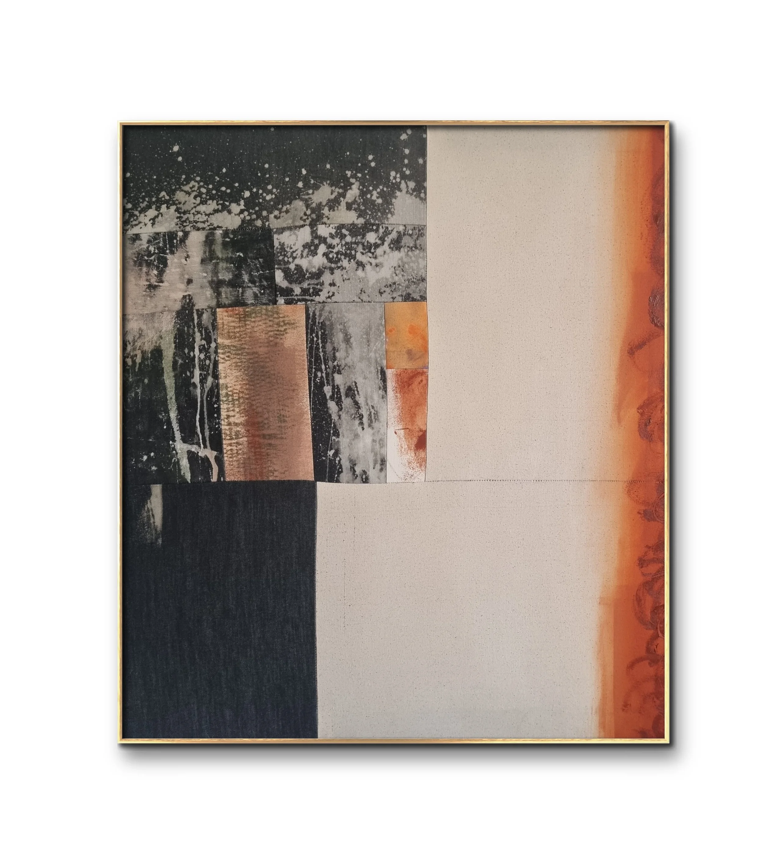 Acrilico, pastelli, textile art su tela grezza di cotone