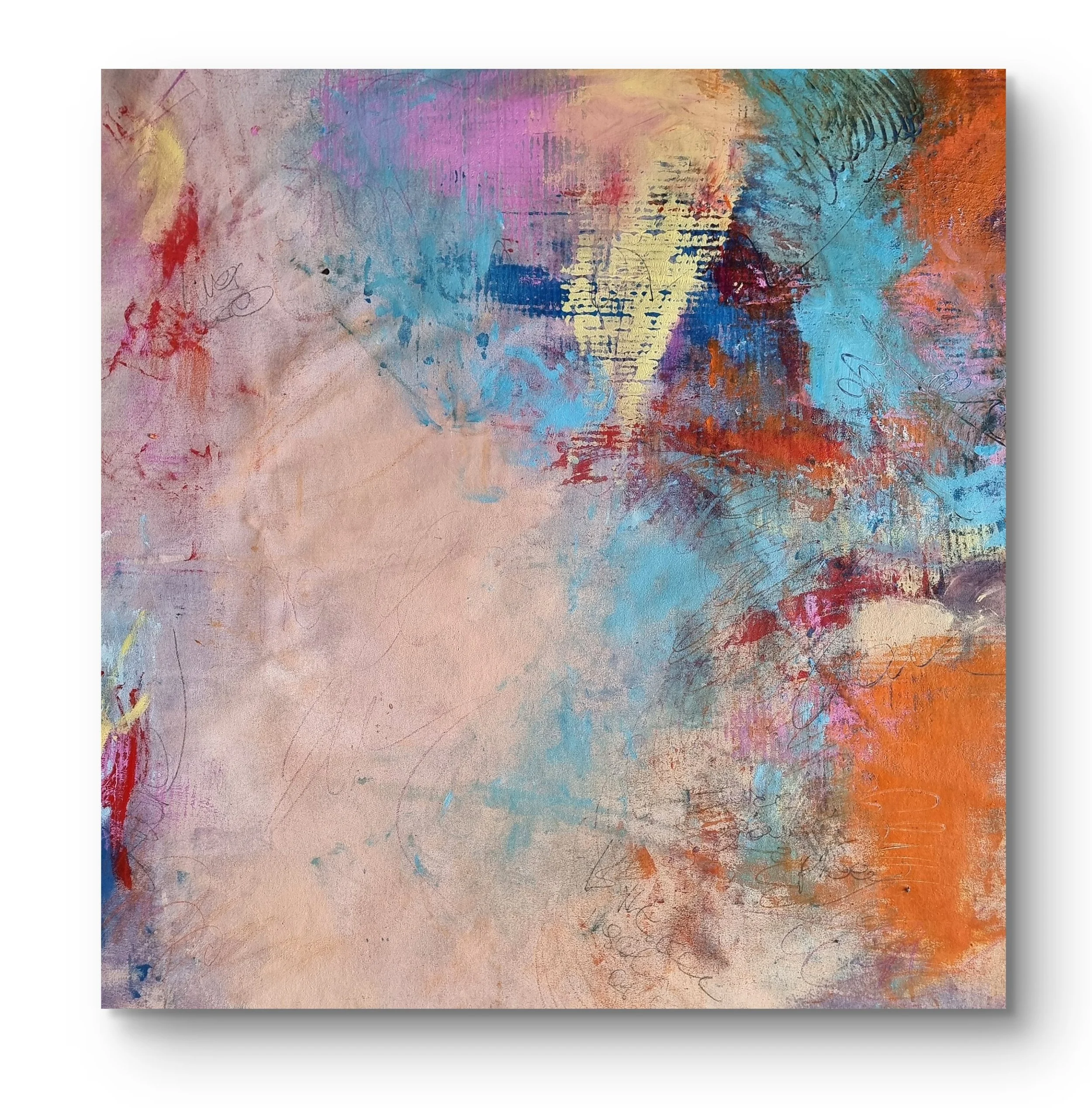 Acrilico, pastelli, pastelli ad olio su tela grezza di cotone