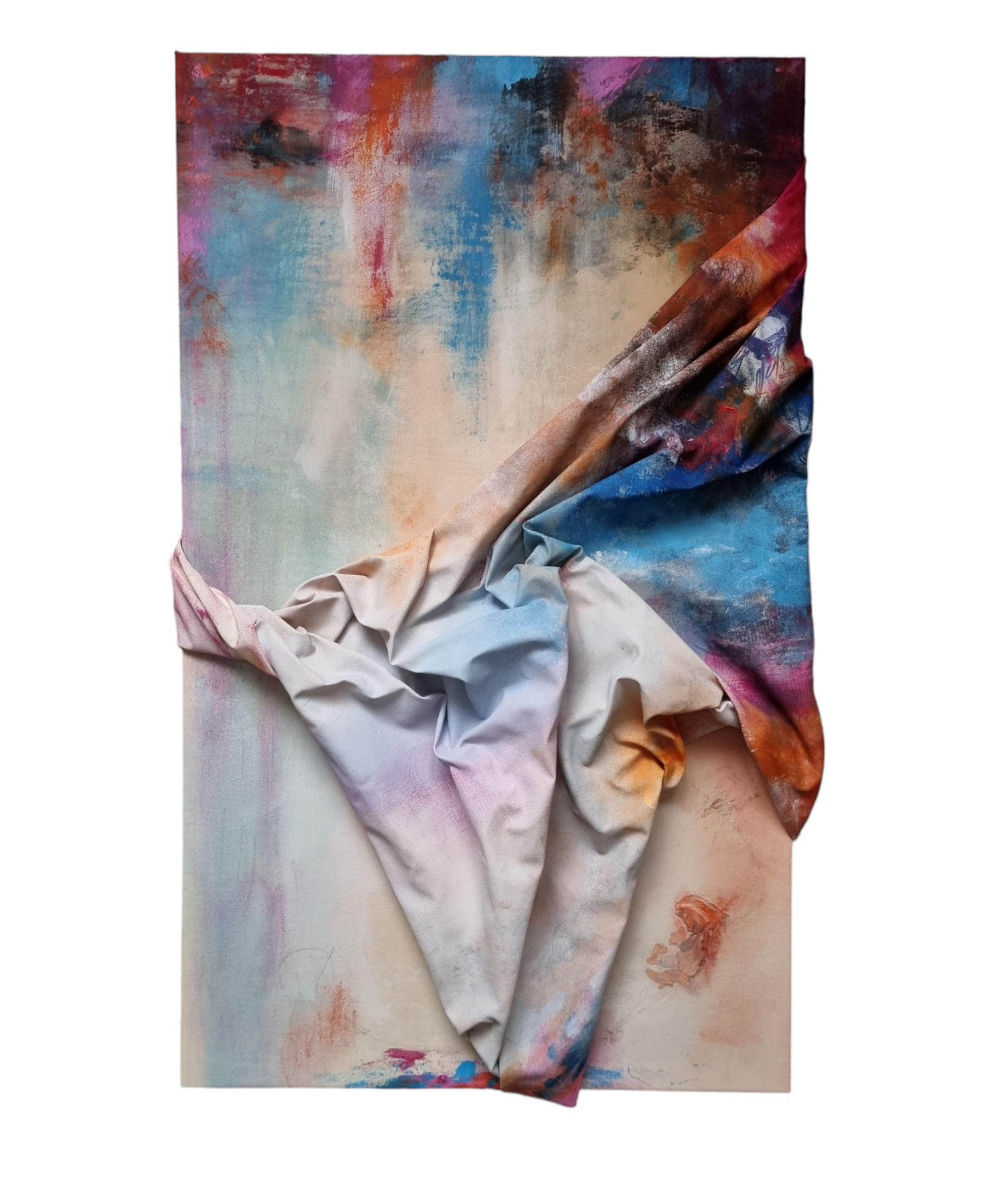 Acrilico su tela di cotone scolpita e montata su tavola di legno