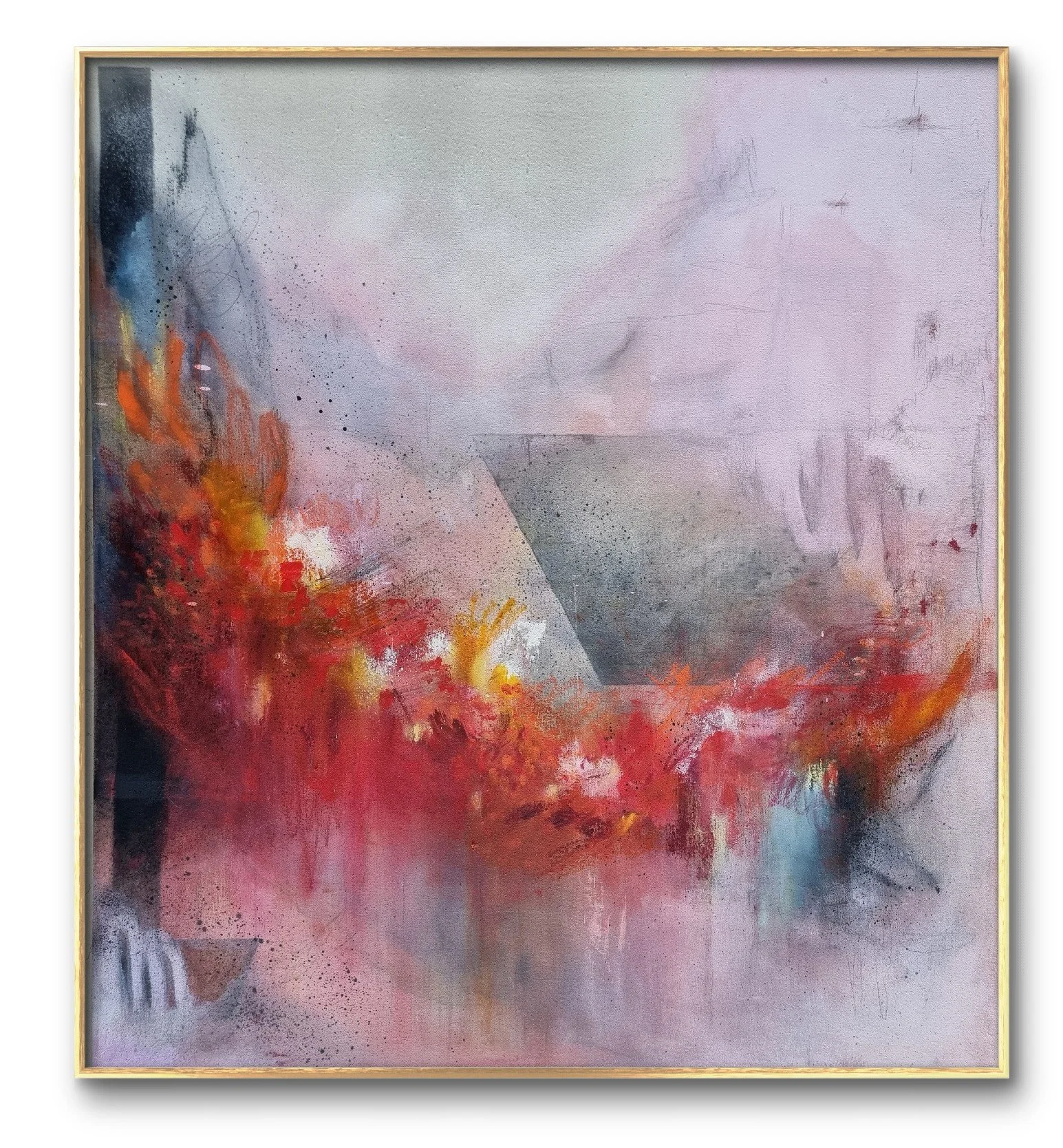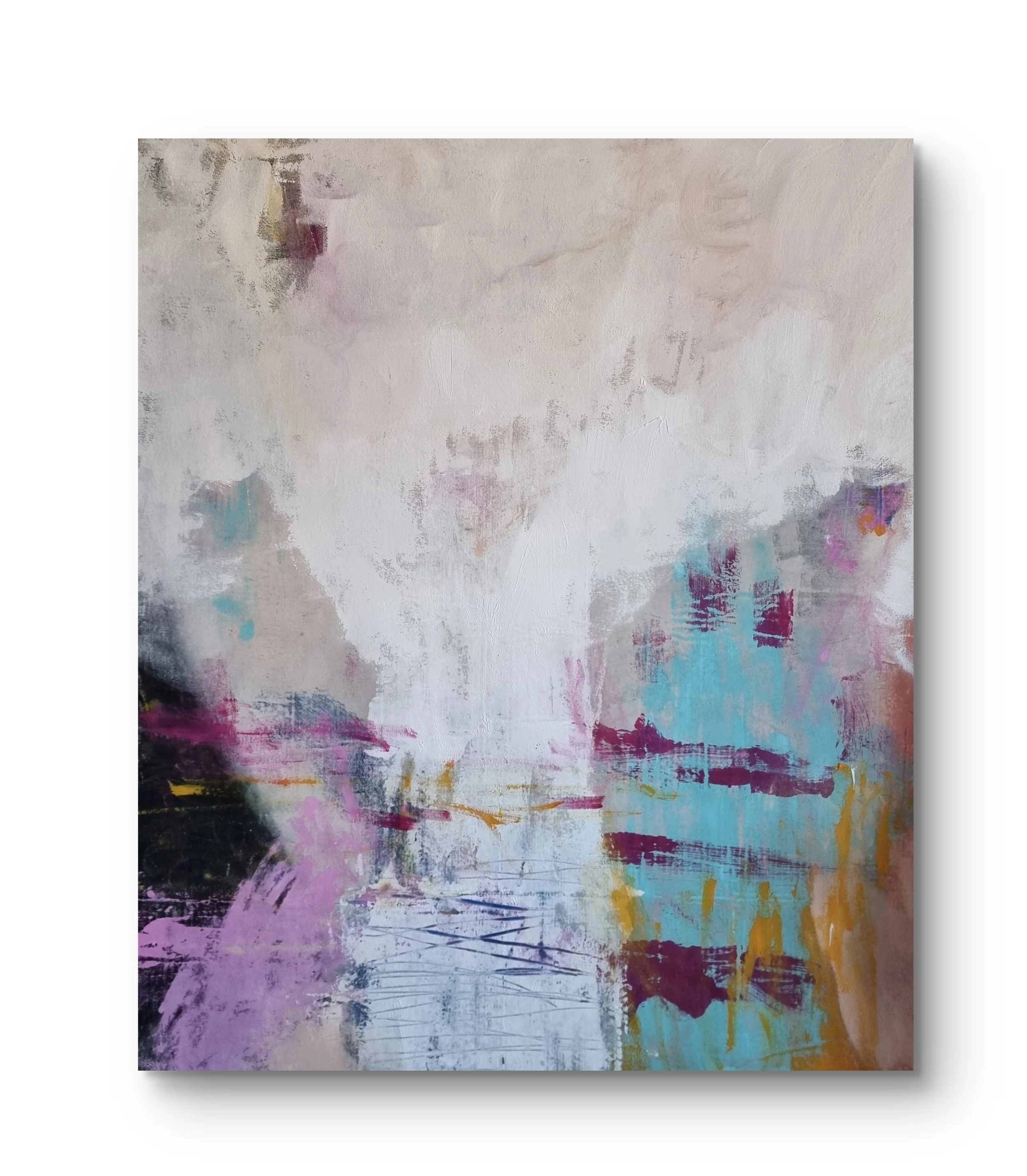 Pittura naturale, acrilici, pastelli ad olio, pittura spray su tela grezza di cotone